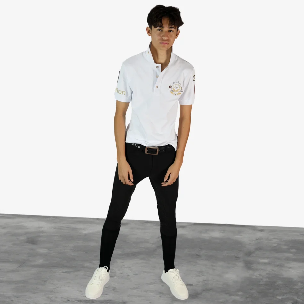 Elegant und raffiniert spielt dieses weiße Poloshirt mit königlichen Farben und goldenen Akzenten für einen eleganten Look. Der Kragen kann mit goldenen Knöpfen zugeknöpft werden, um einen edlen Touch zu erzielen, und wenn er getragen wird, zeigt er das “Astra Noctis”-Branding. Hergestellt aus einem leichten und flexiblen Material, ist es perfekt für Training und Bewegung und bietet gleichzeitig einen schlanken und zeitlosen Stil.
