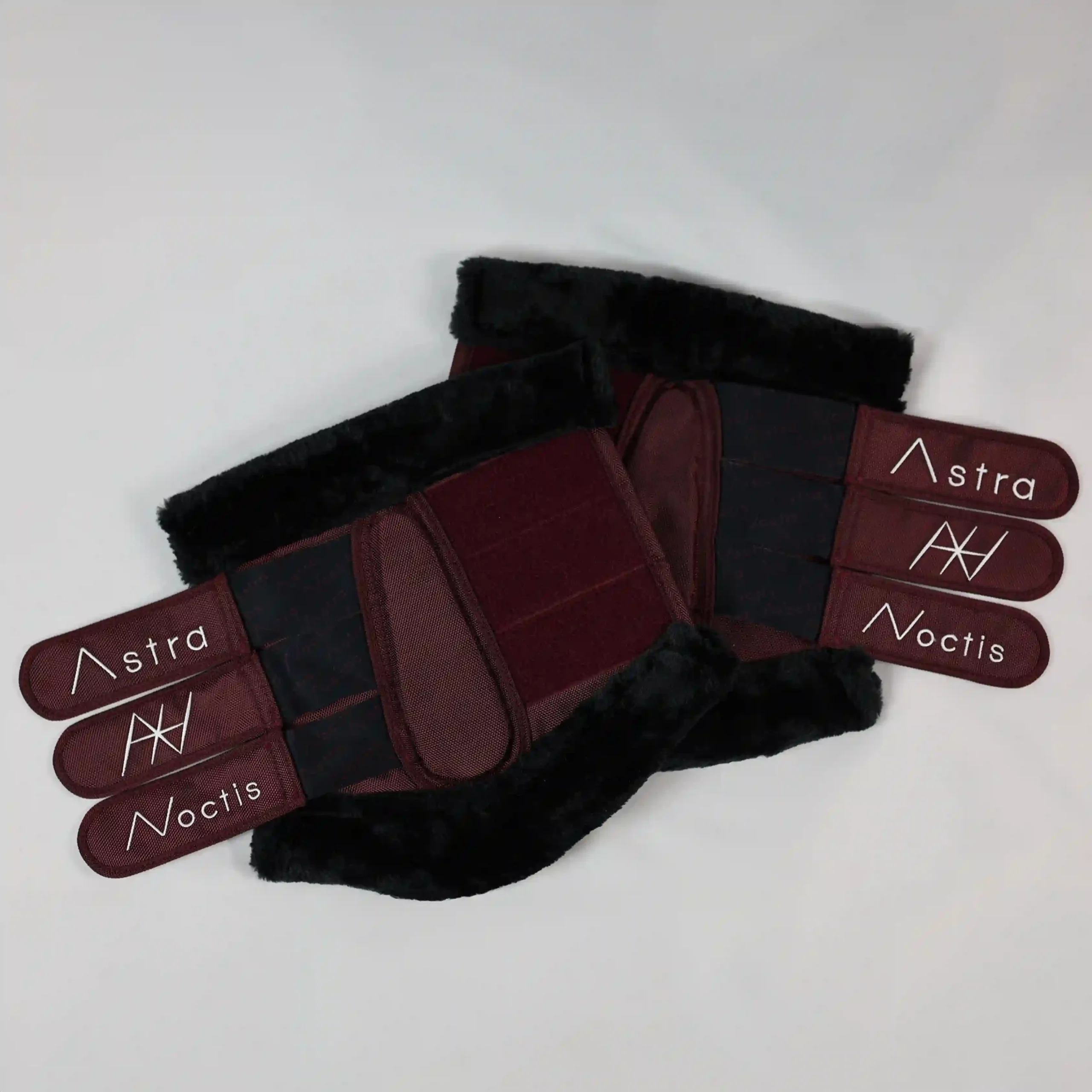 Complete your set with our Hind Brush Boots, offering both stylish protection for your horse’s legs and ultimate comfort. Featuring our branded elastic and logo embroidery on the closing straps, these boots are as luxurious as they are functional. The teddy faux fur lining ensures a comfortable fit for your horse.