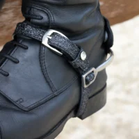 Add a subtle sparkle to your riding outfit with these black glitter spur straps. Each pair features a beautiful crystal, giving a touch of elegance and shine to your look. Crafted with attention to detail, they also include the Astra Noctis stamp on the inside. The ultimate blend of functionality and style.