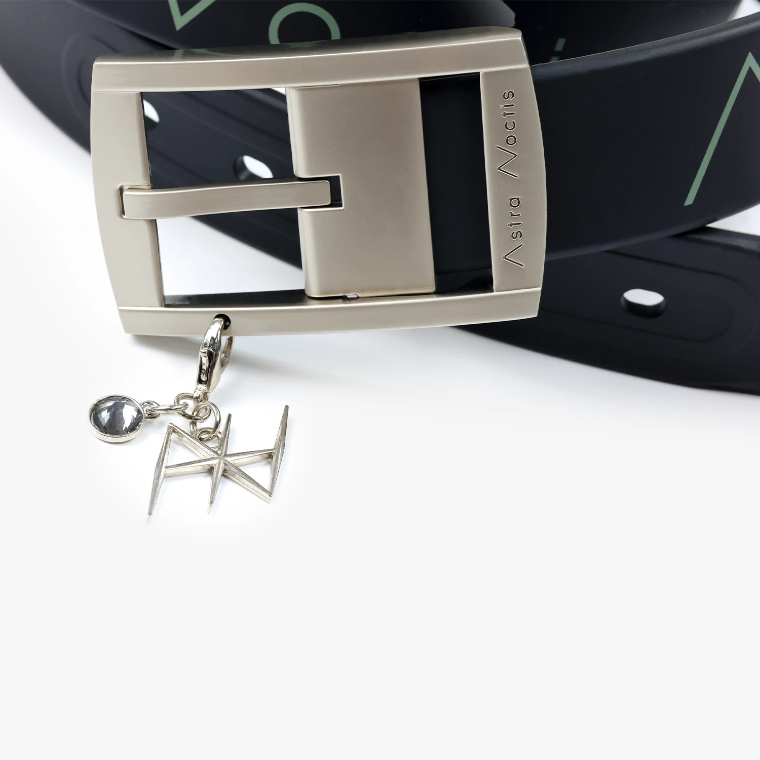 Our versatile rubber elastic belt is designed for all equestrians, featuring “Astra Noctis” elegant print around it. This one-size belt can be customized to your fit—simply cut and reattach the buckle for a perfect match. With a sleek engraved buckle and our signature detachable charm, you can personalize your belt to suit your mood or go fully matchy-matchy with your sock charms! Its luxurious yet simple design adds a chic touch to your everyday riding outfits and competition wear, making it the perfect unisex accessory for any occasion.