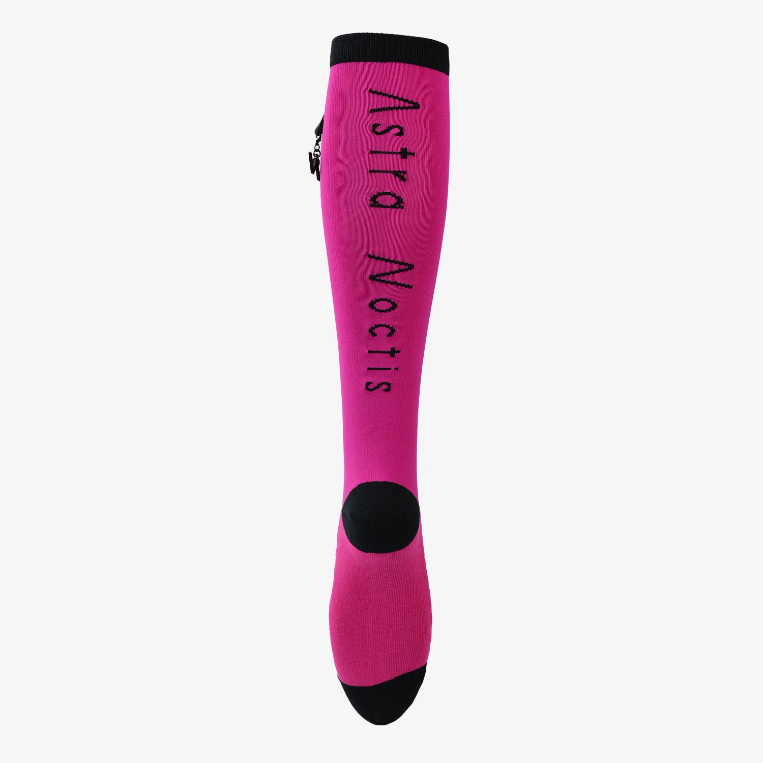 Vibrant and bold, these pink and black socks add a splash of color to any outfit. Featuring “Astra Noctis” woven into the back, they bring a classic yet playful vibe to your wardrobe. The perfect boot fit for all-day comfort. They’re also equipped with our detachable charm to complete the look.