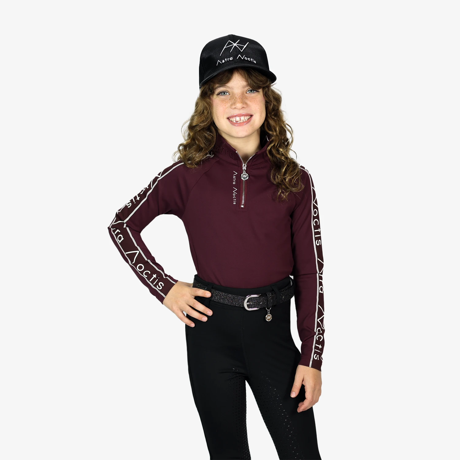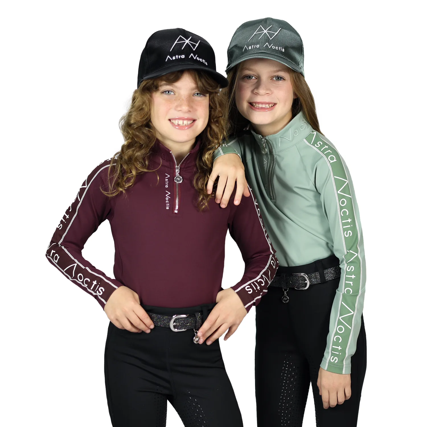 This sporty baselayer combines sleek design with high performance. Featuring “Astra Noctis” printed along the arms and back with bold parallel lines, it’s finished with a luxurious metal zipper and our signature charm. The branded embroidery on the collar adds a touch of elegance, making it both functional and stylish for any equestrian.