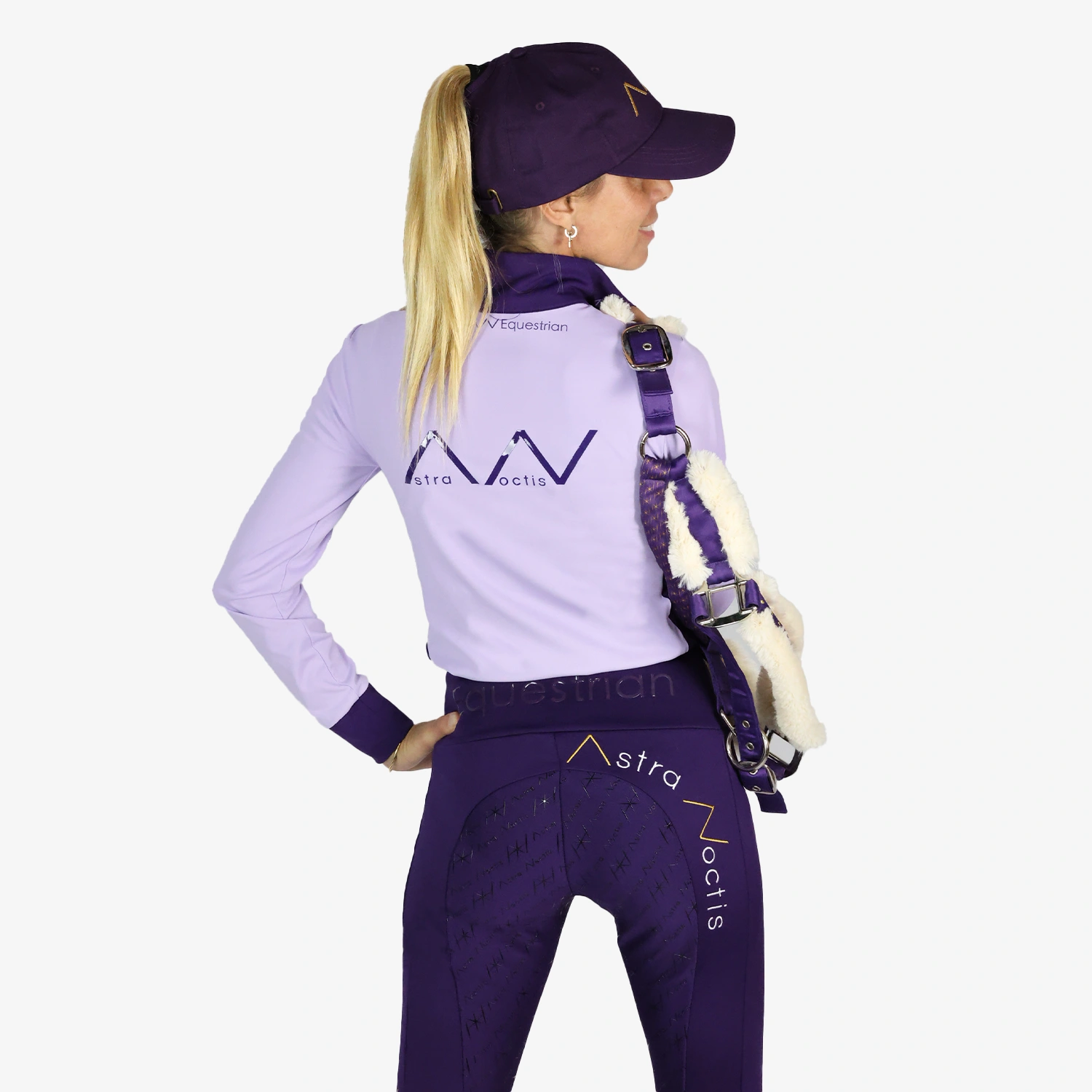 This bold baselayer is a true statement piece, blending light and dark purple to match effortlessly with our saddle pads and other gear. With “Astra Noctis” printed on the arm, the iconic AN logo on the back, and our signature slogan “I am AN Equestrian” near the collar, it showcases the heart of the brand. Wide cuffs and a buttery soft, UV-protective fabric make it ideal for all seasons.